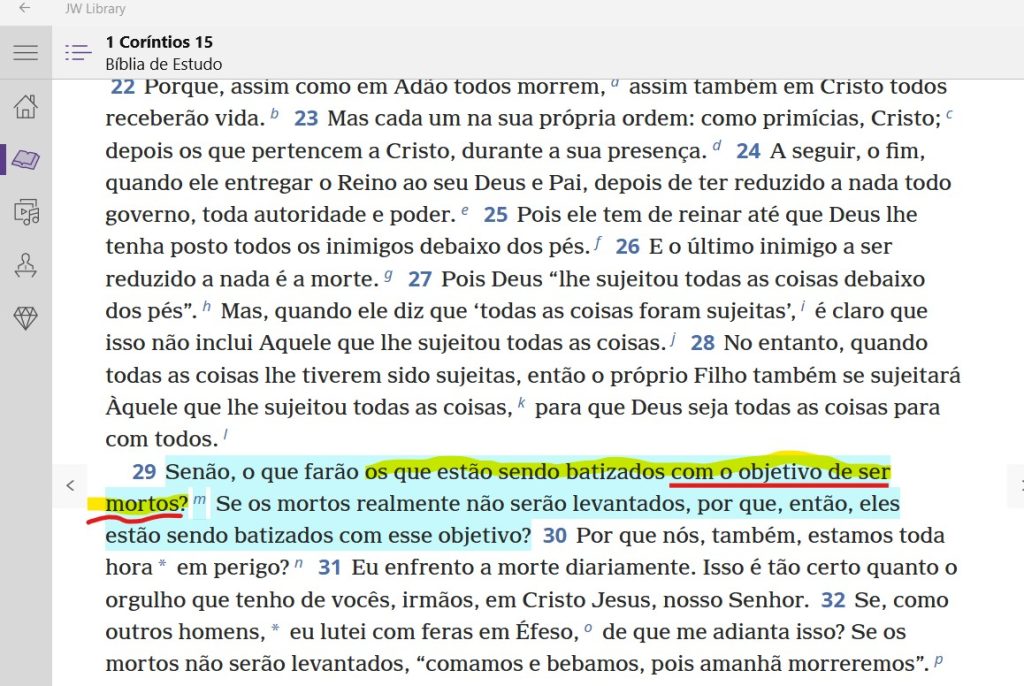 “De outra forma, o que farão aqueles que são batizados pelos mortos? Se os mortos não ressuscitam absolutamente, por que são eles batizados por eles?” — 1Co 15:29